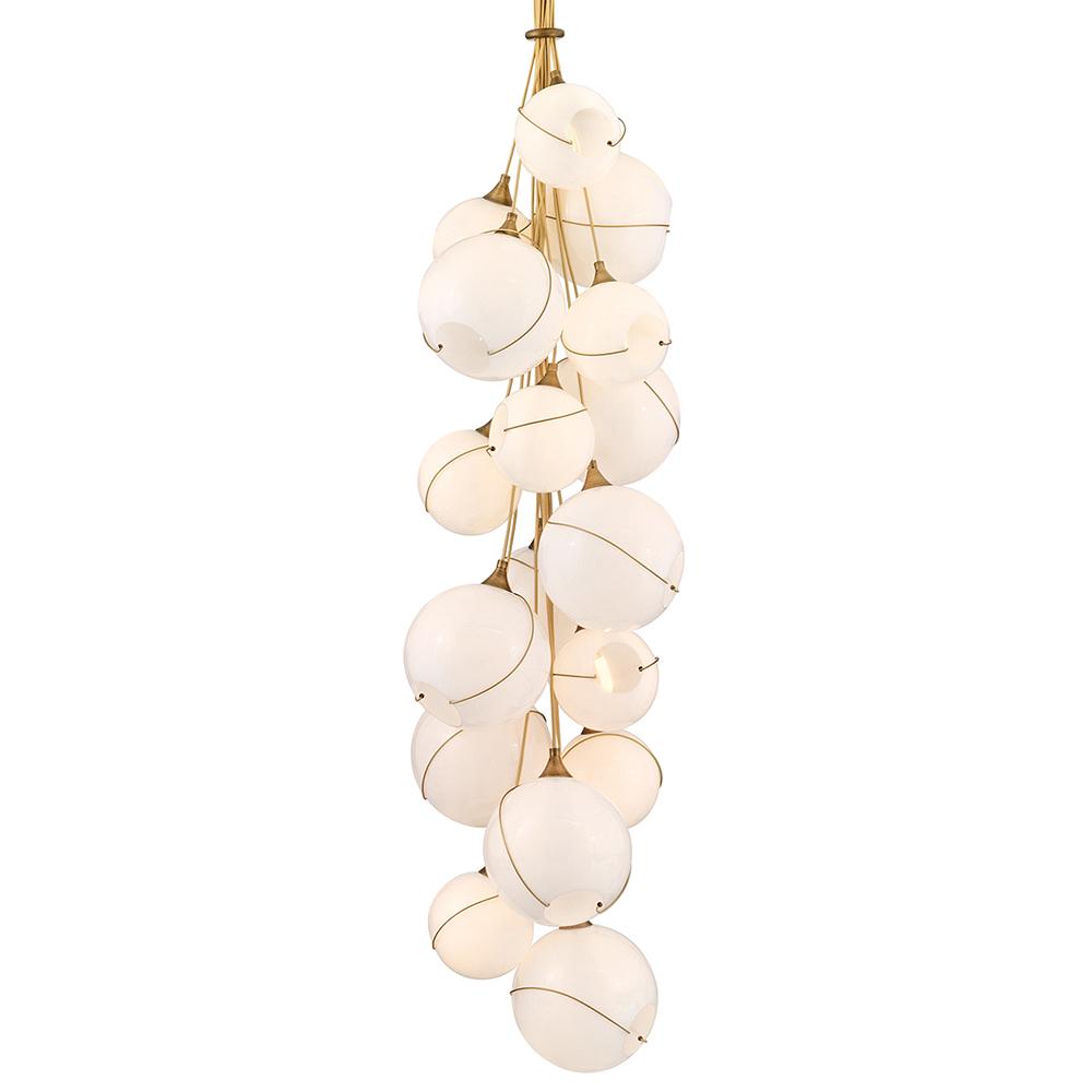 Mesmerizingly asymmetrical with a bohemian, mid-century modern flair, Skye showcases stunning globes of clear or cased opal glass with off-center openings. Slender rings and delicate details in Heritage Brass or Black finishes pull the look together, while adjustable wires allow you to create the perfect look for your space.