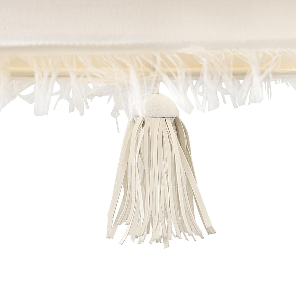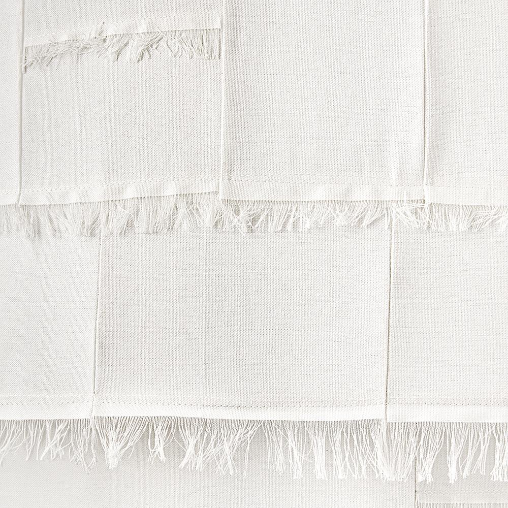 Taking a nod from current distressed fashions, Baya’s soft, hand-sewn patchwork shade creates a light and elegant feeling. Its coastal cottage style and chic texture make an artsy transitional statement complemented by a leather tassel, comfortable dimmable lamping, and a Textured Plaster finish.