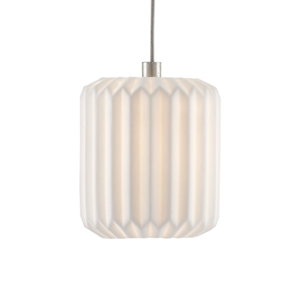 The Dove 30-Light Multi-Drop Pendant has pleated shades made of pale ceramic that diffuse the light wafting through them. The indentions and ridges on the shades of the white pendant bring a textural feel to this luminary even though it is monochromatic. The canopy of this piece is luminous in a painted silver finish. This fixture is among Currey & Company's multi-drop pendant collection, which includes multiple configurations.