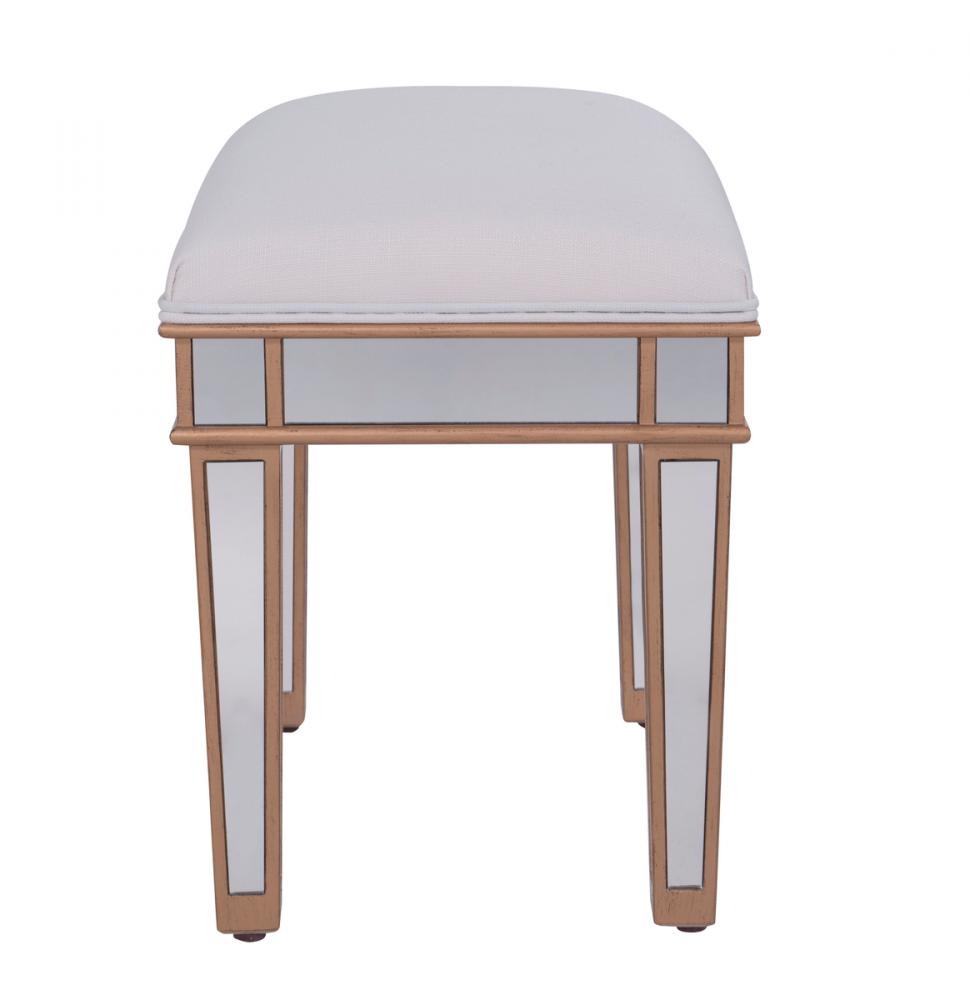 This upholstered stool is covered by a linen and cotton blend, adding a velvety feel, softness and extra comfort. (constructed with selected kiln-dried solid wood and engineered wood panels.)
