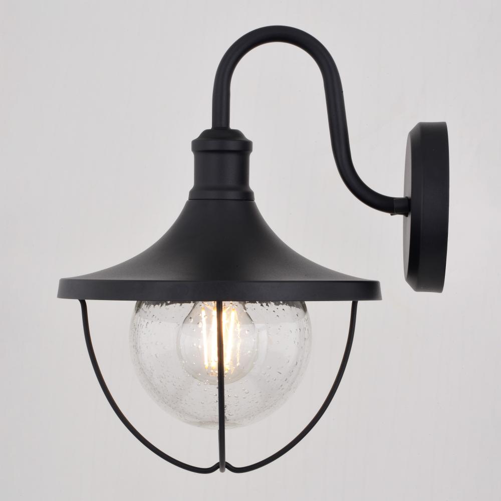 Celebrate coastal charm with the timeless Dunlap outdoor wall light. Its textured black finish, clear seeded glass, and updated swooping shade design create a classic and versatile look. Perfect for creating a laid back and welcoming atmosphere in your entryways, patios, or any other outdoor gathering space.
