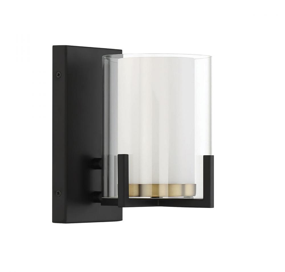 Eaton 1-Light Wall Sconce in Matte Black with Warm Brass Accents