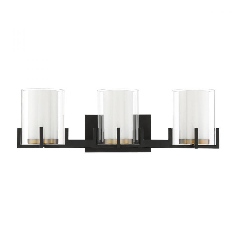 Eaton 3-Light Bathroom Vanity Light in Matte Black with Warm Brass Accents