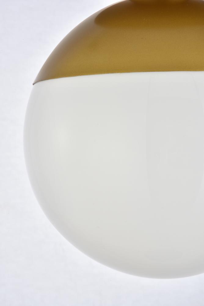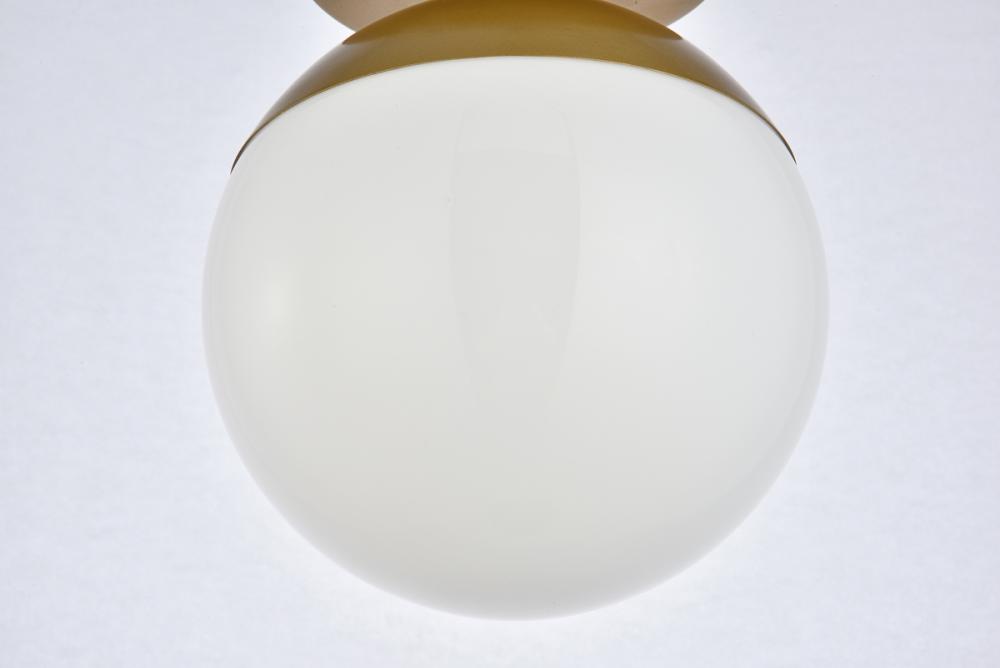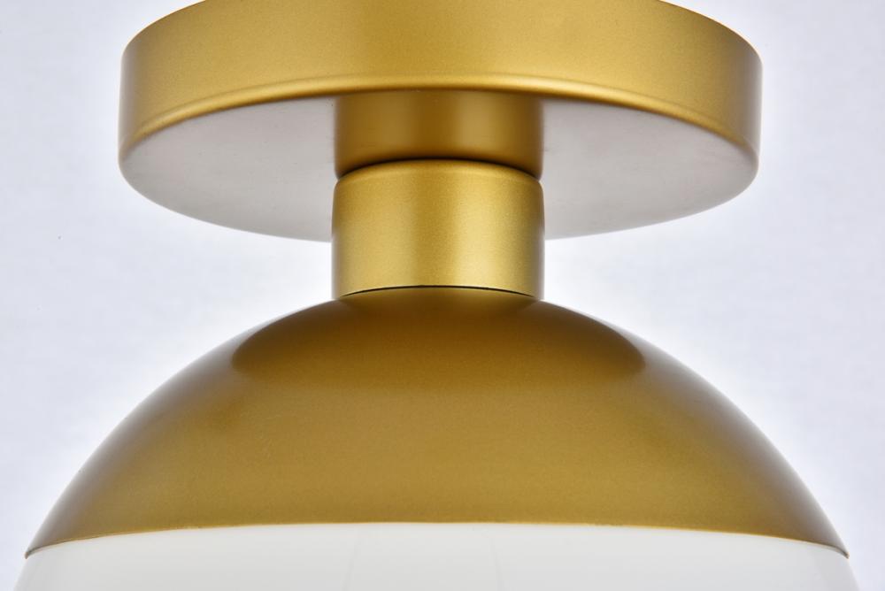 Refined style with a practical design, Eclipse flush mount bring cosmopolitan sophistication anywhere, especially to an entryway, office, bathroom, bedroom, or kitchen. The smooth iron frame features a disk-shaped canopy and comes in a brass finish. A touch of color on top of the frosted white spherical glass shade brings character to this classic style. Living in the big city has never been this easy.