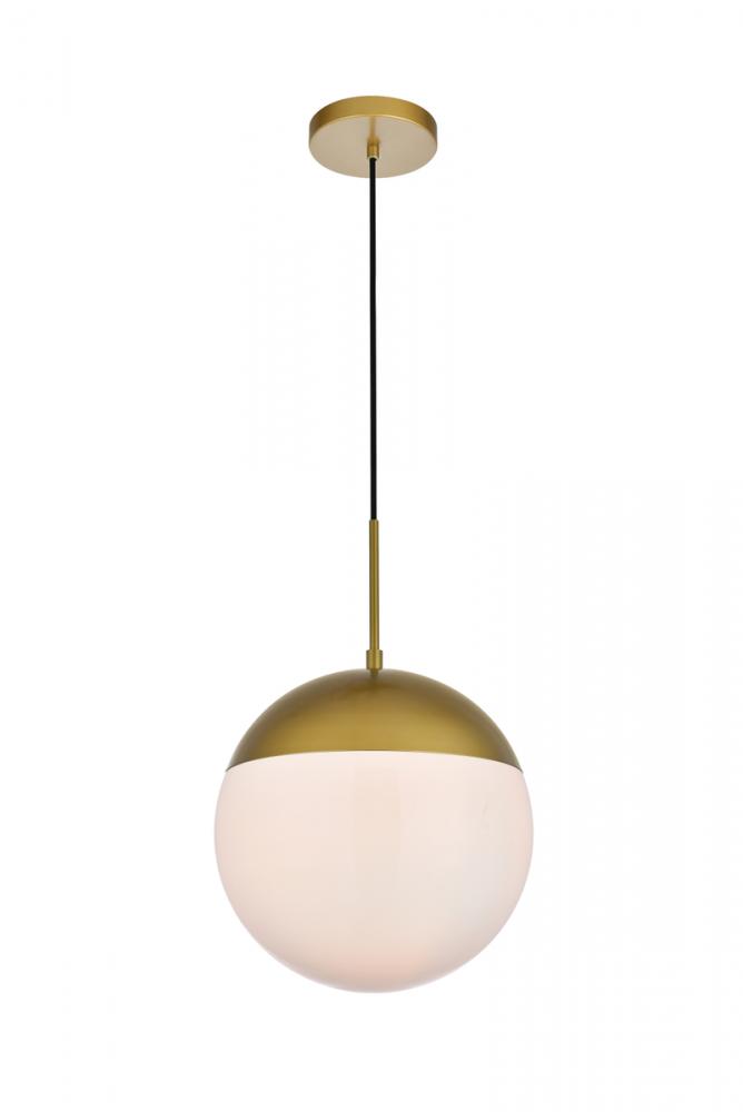 Refined style with a practical design, Eclipse hanging pendant lamps bring cosmopolitan sophistication anywhere, especially to an entryway, office, bathroom, bedroom, or kitchen. The smooth iron frame features a disk-shaped canopy and comes in a brass finish. An adjustable black cord allows you to vary the hanging height from 19.5 to 69 inches. A touch of color on top of the frosted white spherical glass shade brings character to this classic style. Living in the big city has never been this easy.
