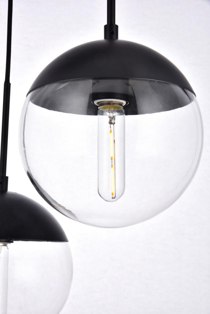 Refined style with a practical design, Eclipse hanging pendant lamps bring cosmopolitan sophistication anywhere, especially to an entryway, office, bathroom, bedroom, or kitchen. The smooth iron frame features a disk-shaped canopy and comes in a black finish. An adjustable black cord allows you to vary the hanging height from 16 to 78 inches. A touch of color on top of the clear spherical glass shade brings character to this classic style. Living in the big city has never been this easy.
