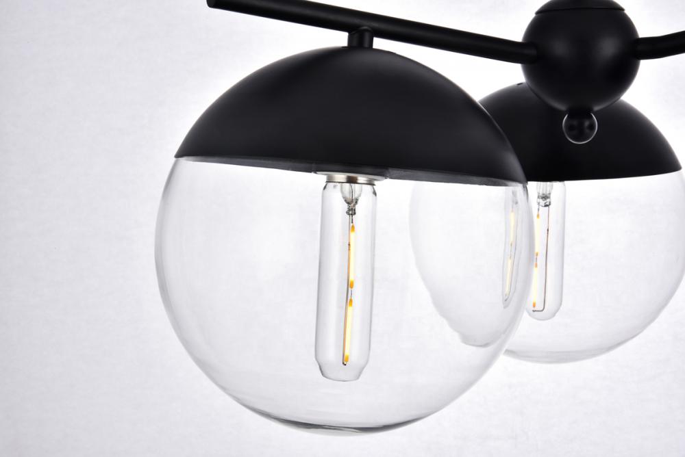 Refined style with a practical design, Eclipse hanging pendant lamps bring cosmopolitan sophistication anywhere, especially to an entryway, office, bathroom, bedroom, or kitchen. The smooth iron frame features a disk-shaped canopy and comes in a black finish. An adjustable black cord allows you to vary the hanging height from 16 to 56 inches. A touch of color on top of the clear spherical glass shade brings character to this classic style. Living in the big city has never been this easy.