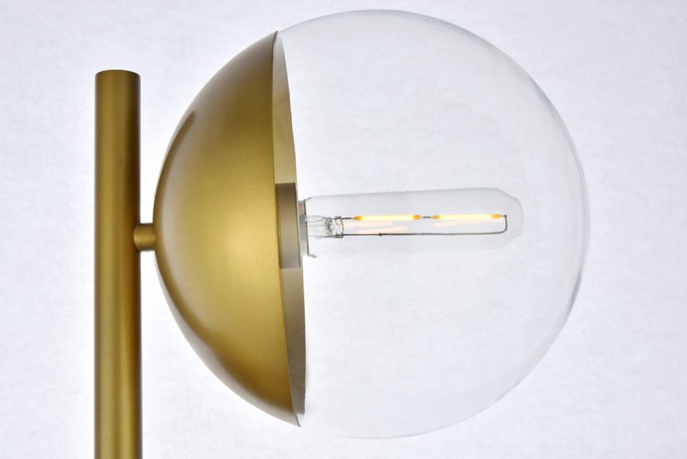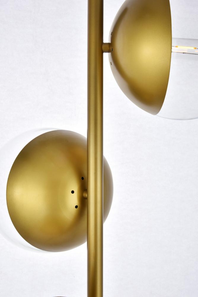 Floor lamp features a brass and clear glass.
