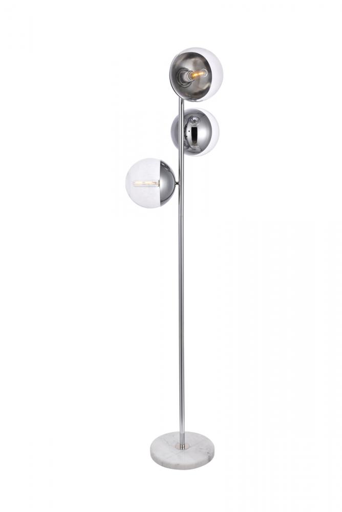 Refined style with a practical design, Eclipse Floor Lamp bring cosmopolitan sophistication anywhere, especially to an entryway, office, bathroom, bedroom, or kitchen. The smooth marble base anchors the floor lamp and comes in a chrome finish. A touch of color on top of the clear spherical glass shade brings character to this classic style. Living in the big city has never been this easy.