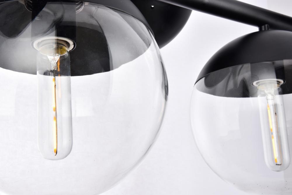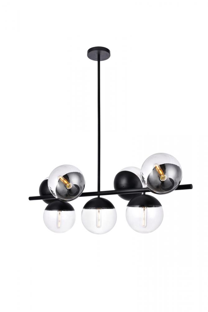 Refined style with a practical design, Eclipse hanging pendant lamps bring cosmopolitan sophistication anywhere, especially to an entryway, office, bathroom, bedroom, or kitchen. The smooth iron frame features a disk-shaped canopy and comes in a black finish. An adjustable black cord allows you to vary the hanging height from 17 to 57 inches. A touch of color on top of the clear spherical glass shade brings character to this classic style. Living in the big city has never been this easy.