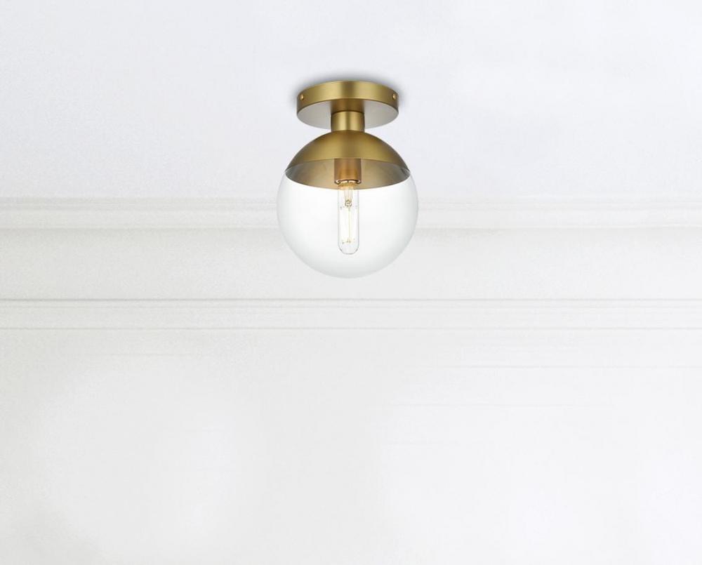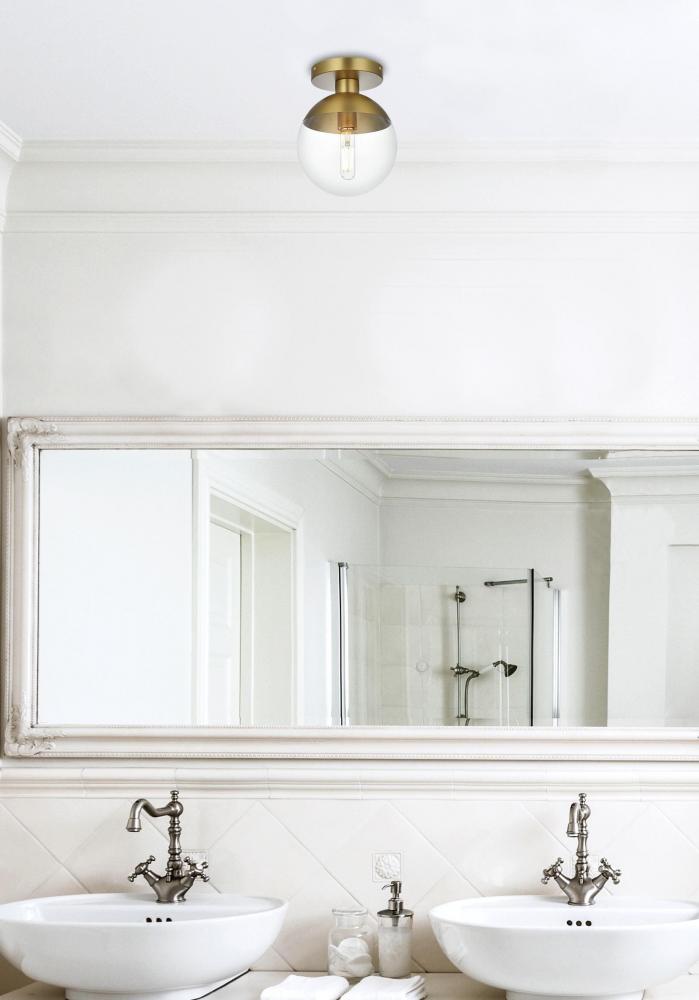 Refined style with a practical design, Eclipse flush mount bring cosmopolitan sophistication anywhere, especially to an entryway, office, bathroom, bedroom, or kitchen. The smooth iron frame features a disk-shaped canopy and comes in a satin gold or chrome finish. A touch of color on top of the clear or frosted white spherical glass shade brings character to this classic style. Living in the big city has never been this easy.