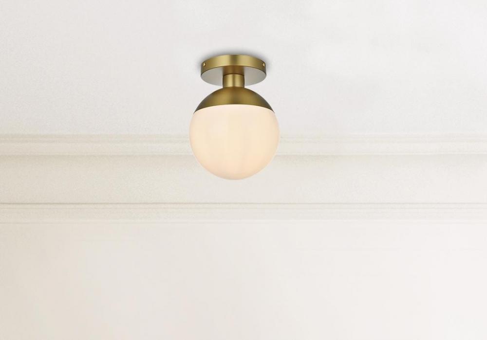 Refined style with a practical design, Eclipse flush mount bring cosmopolitan sophistication anywhere, especially to an entryway, office, bathroom, bedroom, or kitchen. The smooth iron frame features a disk-shaped canopy and comes in a satin gold or chrome finish. A touch of color on top of the clear or frosted white spherical glass shade brings character to this classic style. Living in the big city has never been this easy.