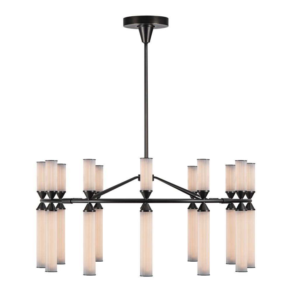 Edwin 38-in Urban Bronze/Frosted Ribbed Glass LED Chandelier