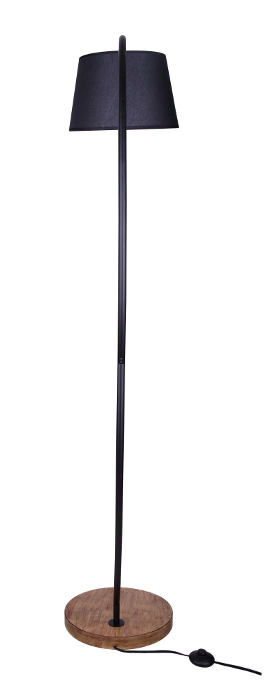 The ELAN 1-light floor lamp balances modern design with natural warmth, making it a striking yet functional accent for any home. Featuring a matte black frame, a real wood base, and a ribbed black fabric shade, it layers texture and contrast for a bold, contemporary look. This lamp accommodates a 60W Type A bulb to cast soft, inviting light, perfect for living rooms, bedrooms, or reading corners. With its convenient in-line foot switch, the ELAN makes everyday lighting effortless while bringing style, comfort, and durability into your space.
