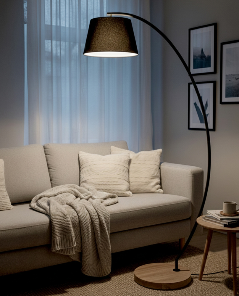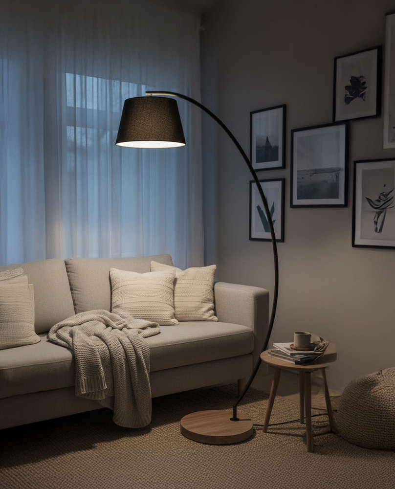 Modern Biophilic Design: The combination of a matte black frame, ribbed black fabric shade, and real wood base delivers a contemporary yet natural aesthetic. This thoughtful blend adds depth, warmth, and sophistication to your décor.