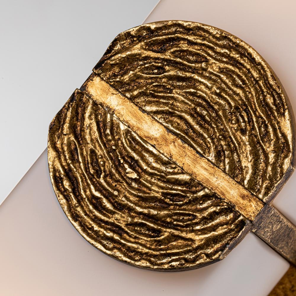 Elan Gold Leaf 2-Light Sconce: stunning center sculpture framed by etched glass. Versatile—hang vertically or horizontally.