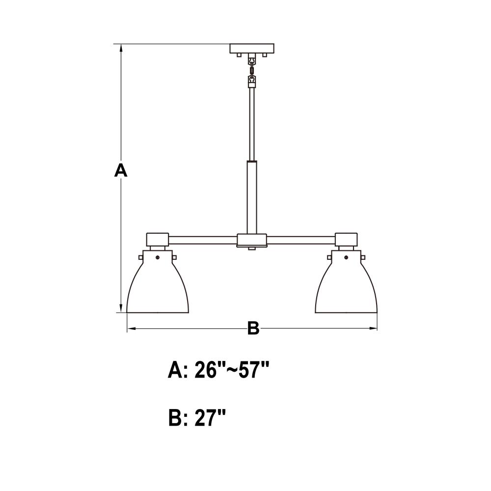 Adjustable height; 26-57 inches using 2 x 12-in, 2 x 6-in of included down rods, sloped ceiling compatible