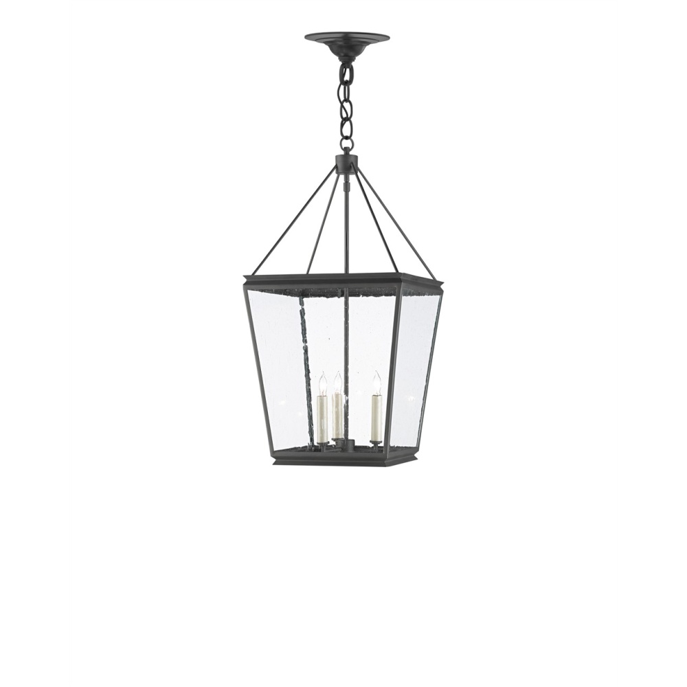 The Ellerman Lantern is a tried-and-true design that reflects the age-old lantern shape, which never goes out of style. Made of wrought iron in an old iron finish, the black lantern is fitted with seeded glass panels to complete the feel that this is a fixture rooted in Americana. Adjustable from 32" to 104" with use of included chain/rod kit/cable. If your space calls for a longer drop, additional chain/rods/cable is available for purchase.
