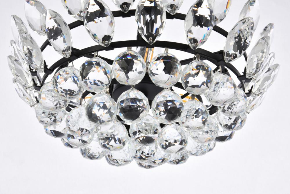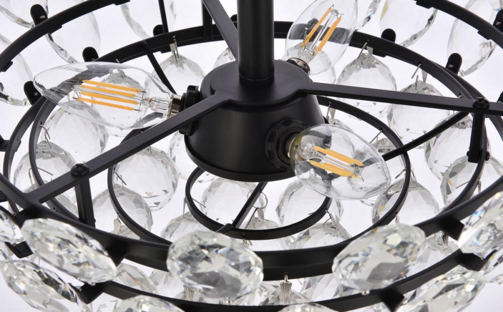 Tiers of clear multi-faceted crystals reflect the soft glow of candelabra bulbs