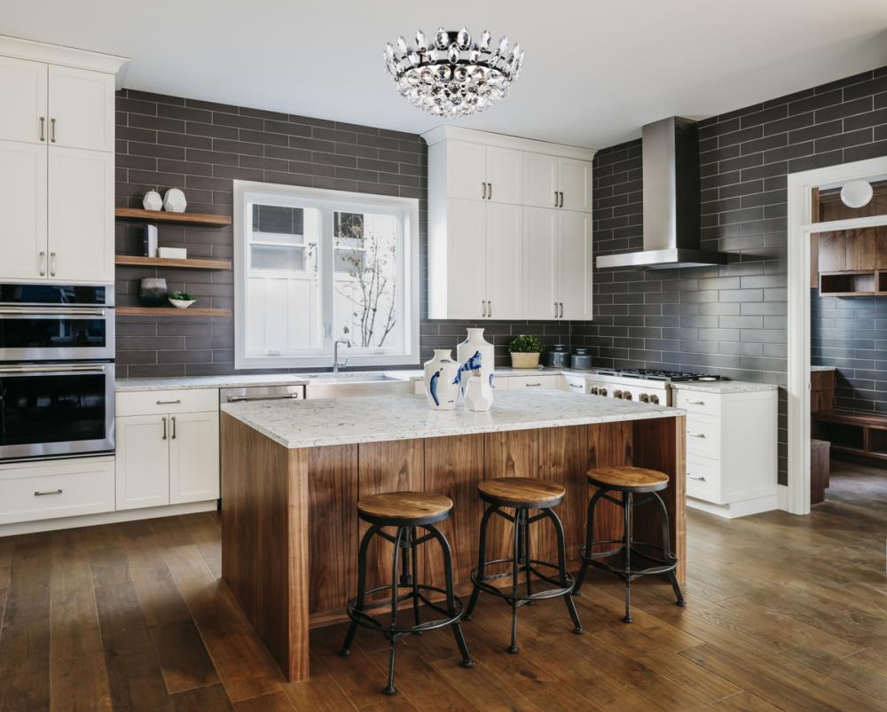 Tiers of clear multi-faceted crystals reflect the soft glow of candelabra bulbs