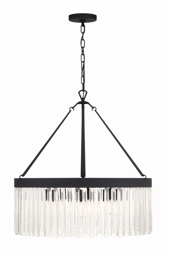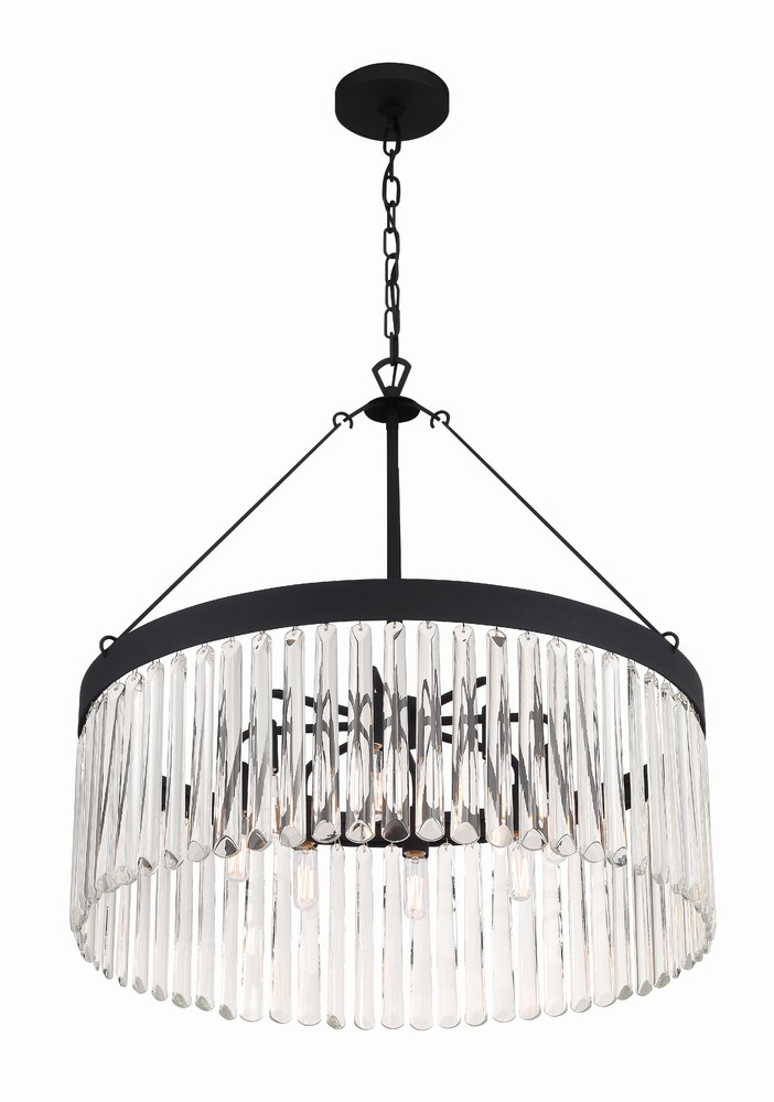 Art deco design is exemplified in the Emory collection. The collection features a row of smooth glass prisms hanging from a steel frame. Both the Black Forged and Modern Gold finishes, add all the sparkle and glamour you need in a fixture.
