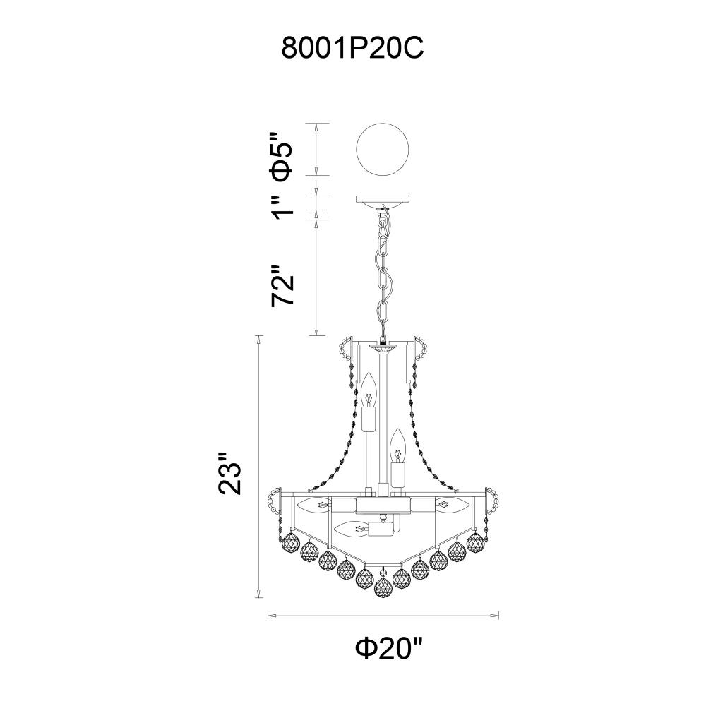 Infuse your home with sophistication and radiance with the 8001P20C from our Empire Collection. Featuring an iconic empire-style silhouette with layers of shimmering clear crystals, this 14-light pendant makes a bold impression in any space. The chrome-finished frame provides a sleek contrast to the brilliance of the crystals, creating a timeless piece that blends classic and contemporary aesthetics. Perfectly sized at 20 inches in diameter, it is ideal for dining rooms, stairwells, or entryways that demand a touch of drama and grace. With E12 candelabra sockets and LED bulb compatibility, it balances beauty with practicality. Easy to install and BACL certified, this fixture offers style and assurance.