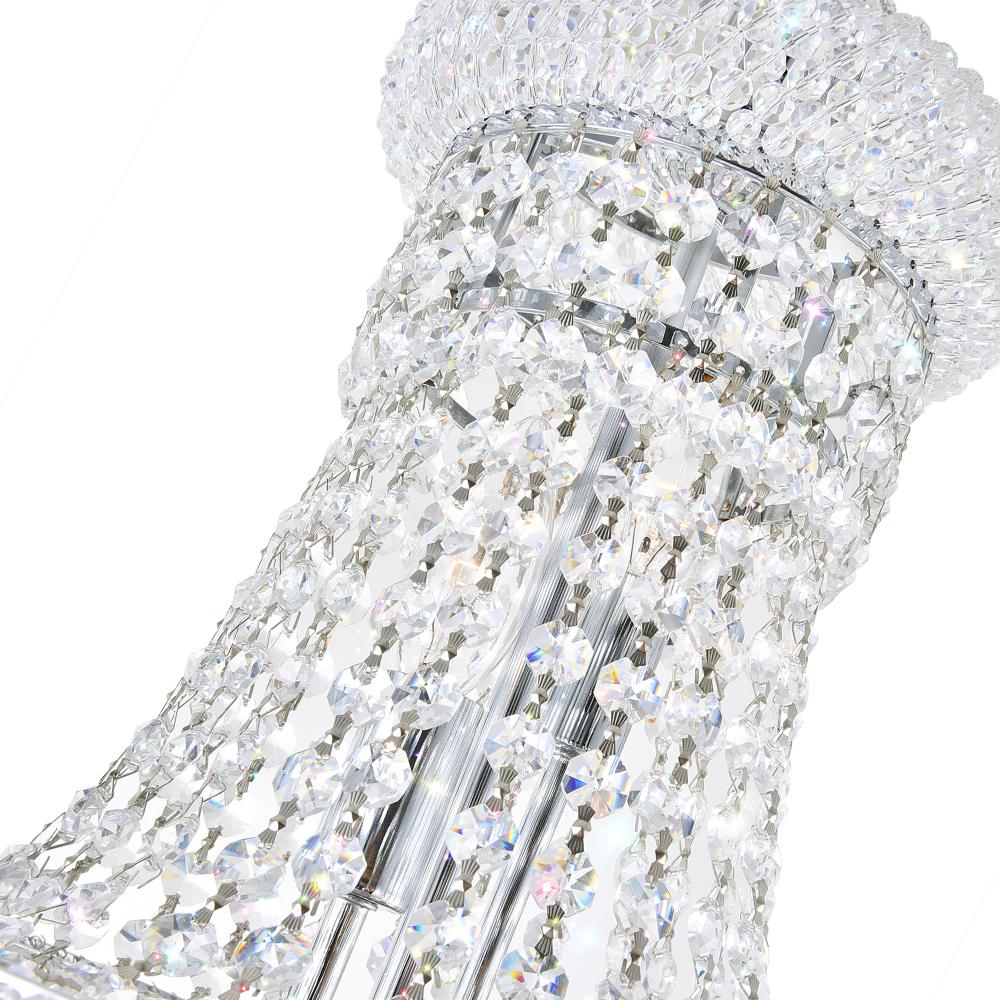 Striking Empire-Inspired Style: This showstopping fixture boasts a bold Empire silhouette, featuring a polished chrome finish and tiers of glistening clear crystals that exude opulence and classic glamour