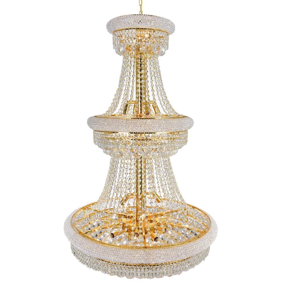 Elevate your space to regal status with the 8001P30G 32-Light Chandelier from the Empire Collection. Glimmering with cascading clear crystals and enveloped in a brilliant gold finish, this piece turns ceilings into works of art. With 32 E12 sockets and LED compatibility, it brings both brilliance and efficiency to large, opulent interiors. Whether illuminating a luxury venue or creating an unforgettable home entryway, this pendant exudes prestige, power, and timeless glamour.