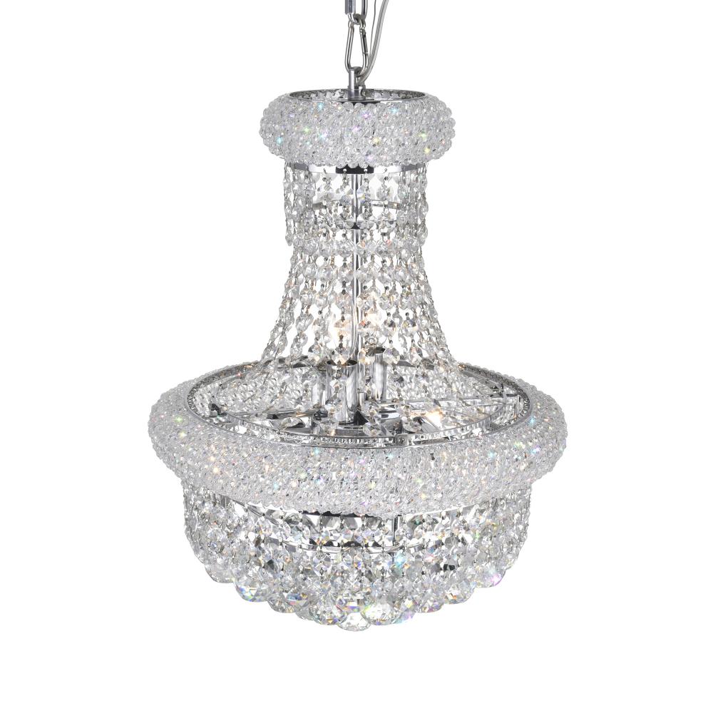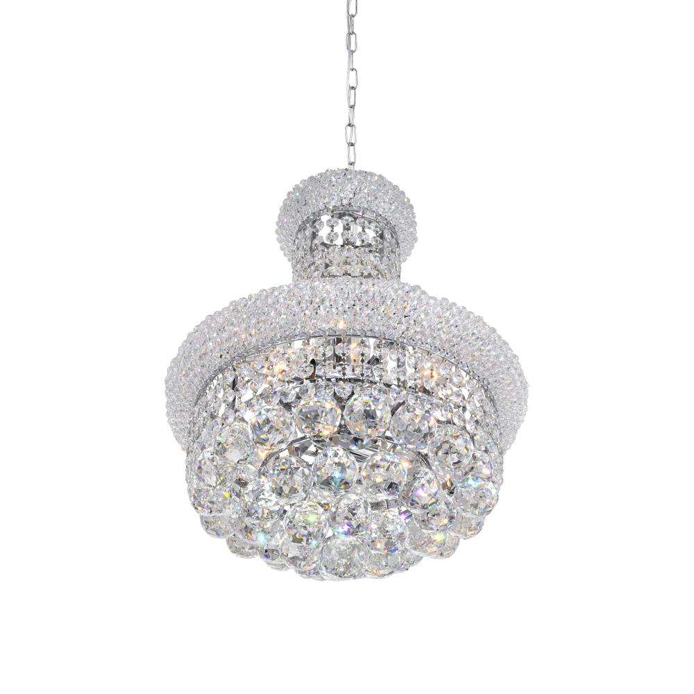 Make a statement with the Empire 6-Light Pendant in Chrome, a chandelier-style hanging fixture that turns any room into a showcase. Featuring a cascade of shimmering clear crystals under a polished chrome frame, this light delivers a brilliant display both day and night. Its six E12 sockets support up to 60W bulbs each (LED compatible, bulbs not included), perfect for creating an inviting ambiance. Ideal for rooms with standard ceiling heights, its an excellent choice for dining rooms, entryways, bedrooms, and stairwells. With easy installation and BACL certification, this piece is as practical as it is stunning. Elevate your decor with lighting that truly shines.