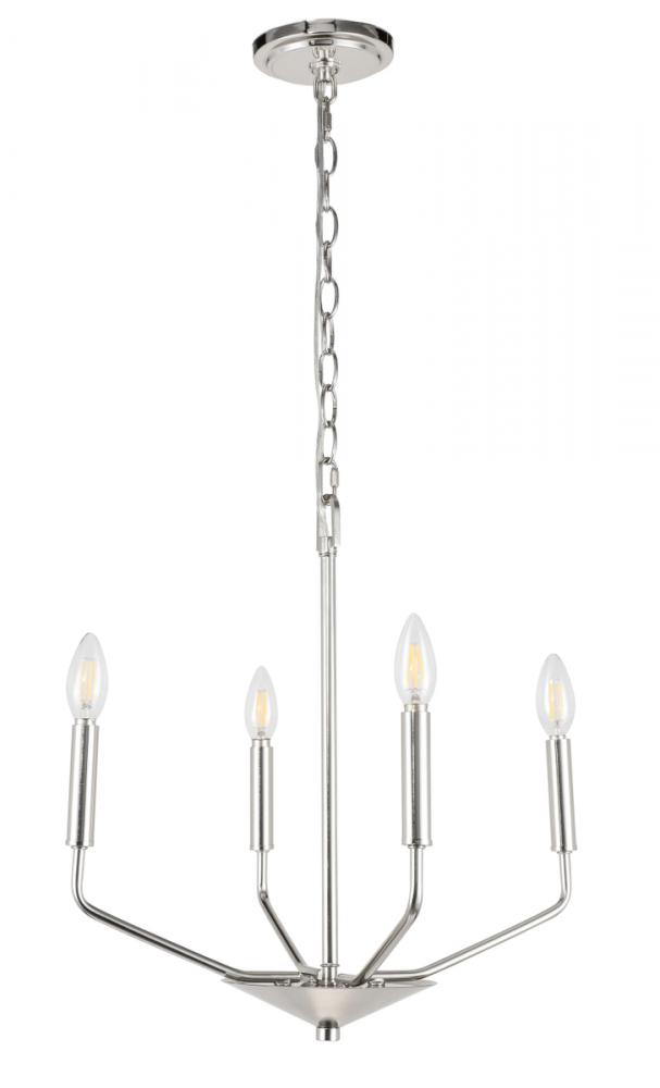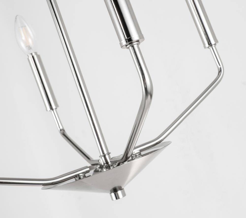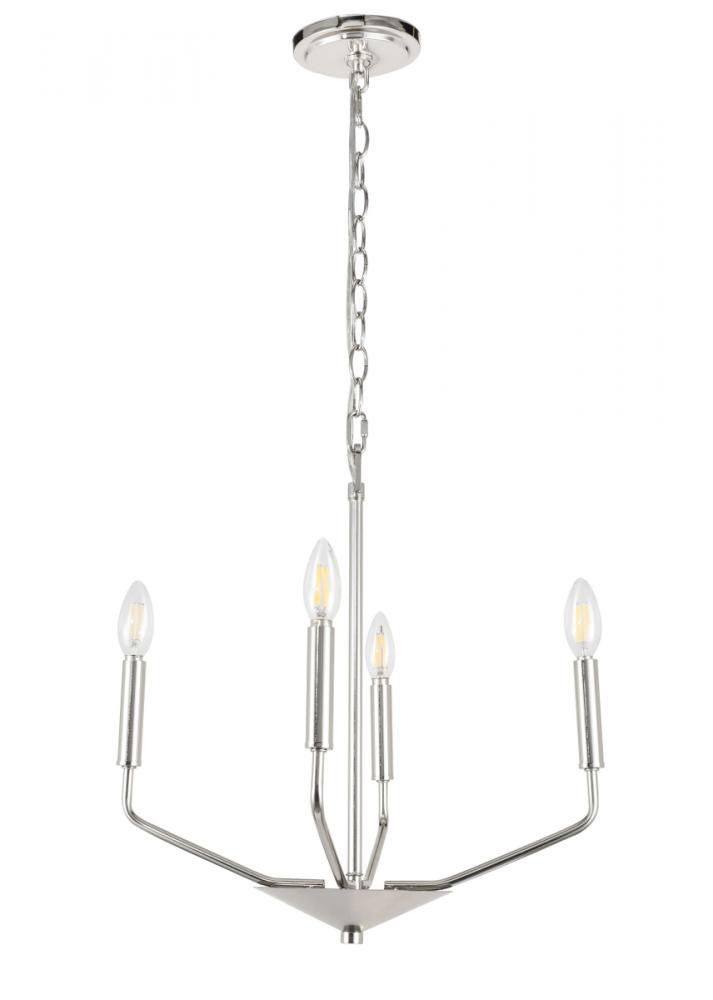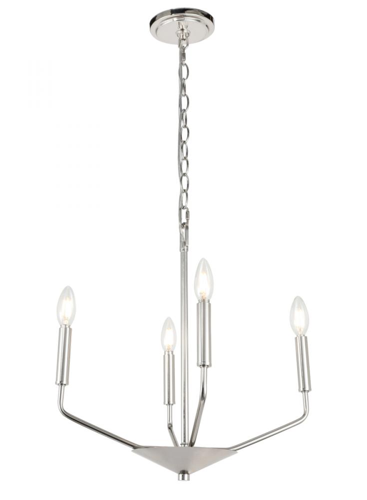 The Enzo Collection pendant showcases the sublime unity of the antique and the modern. This dramatic fixture features four arms that dutifully holds lights in solemn beauty to send radiance and brilliance across your room. Available in a chrome, brass, or two-toned black and brass finish, it is a wonderful lighting piece that will add interest and style to any room in your home--whether it is your living room, dining room, or foyer (light bulbs not included).