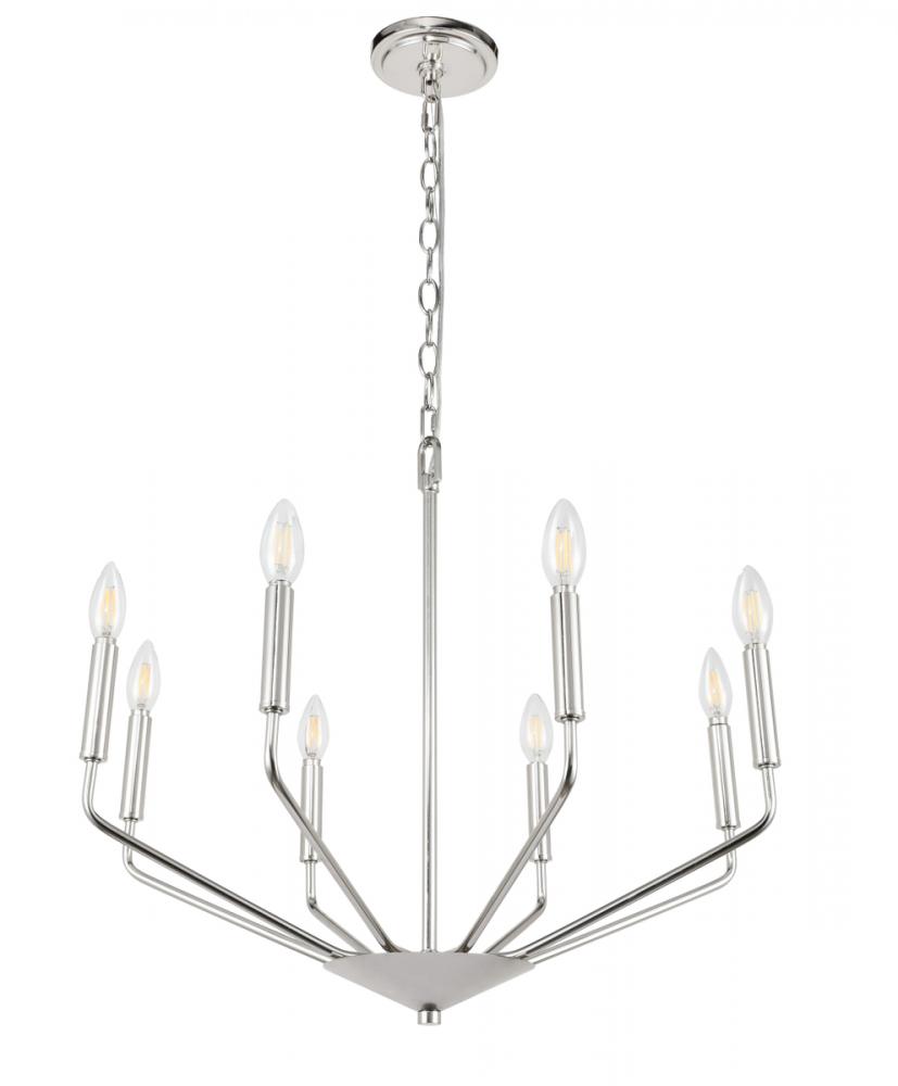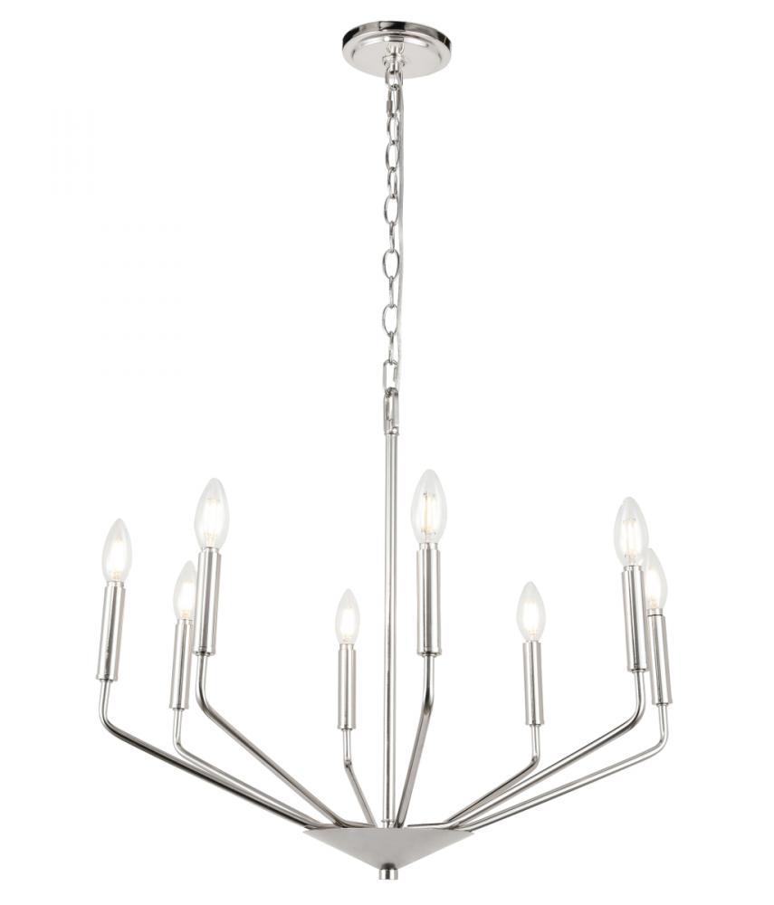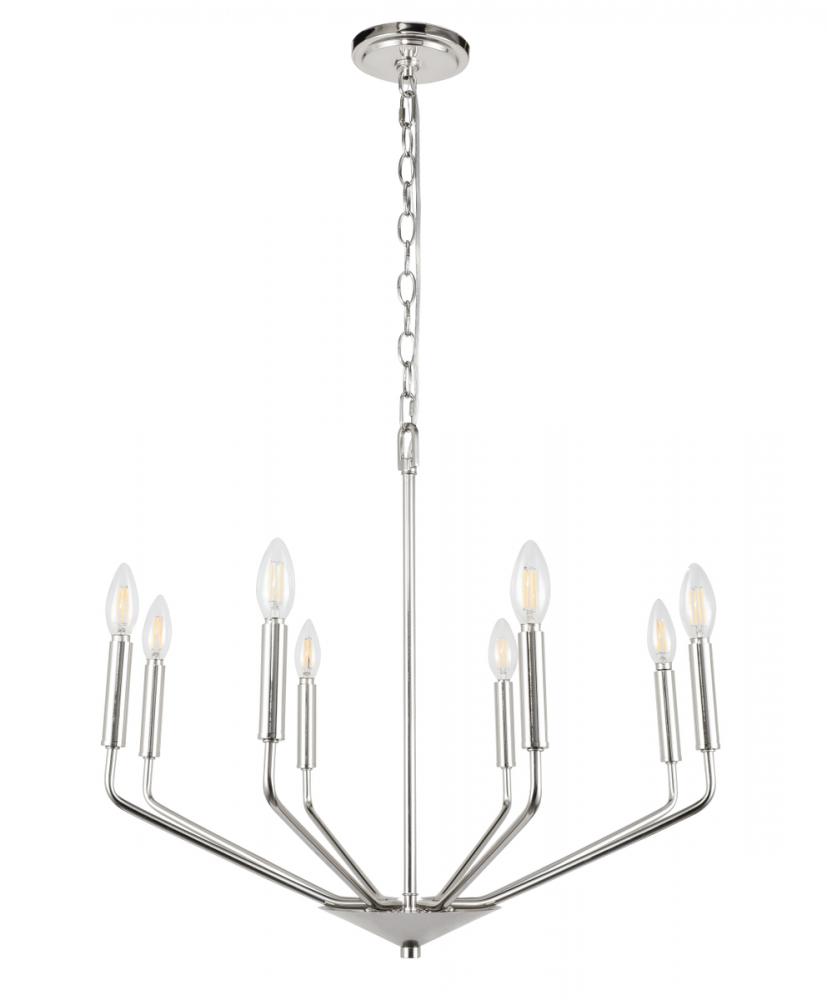 The Enzo Collection pendant showcases the sublime unity of the antique and the modern. This dramatic fixture features eight arms that dutifully holds lights in solemn beauty to send radiance and brilliance across your room. Available in a chrome, brass, or two-toned black and brass finish, it is a wonderful lighting piece that will add interest and style to any room in your home--whether it is your living room, dining room, or foyer (light bulbs not included).