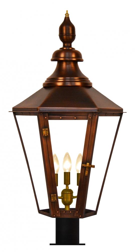 Size 63 Electric Copper Lantern, 3 candelabra base sockets, with Post Fitter, Post Fitter Adaptor