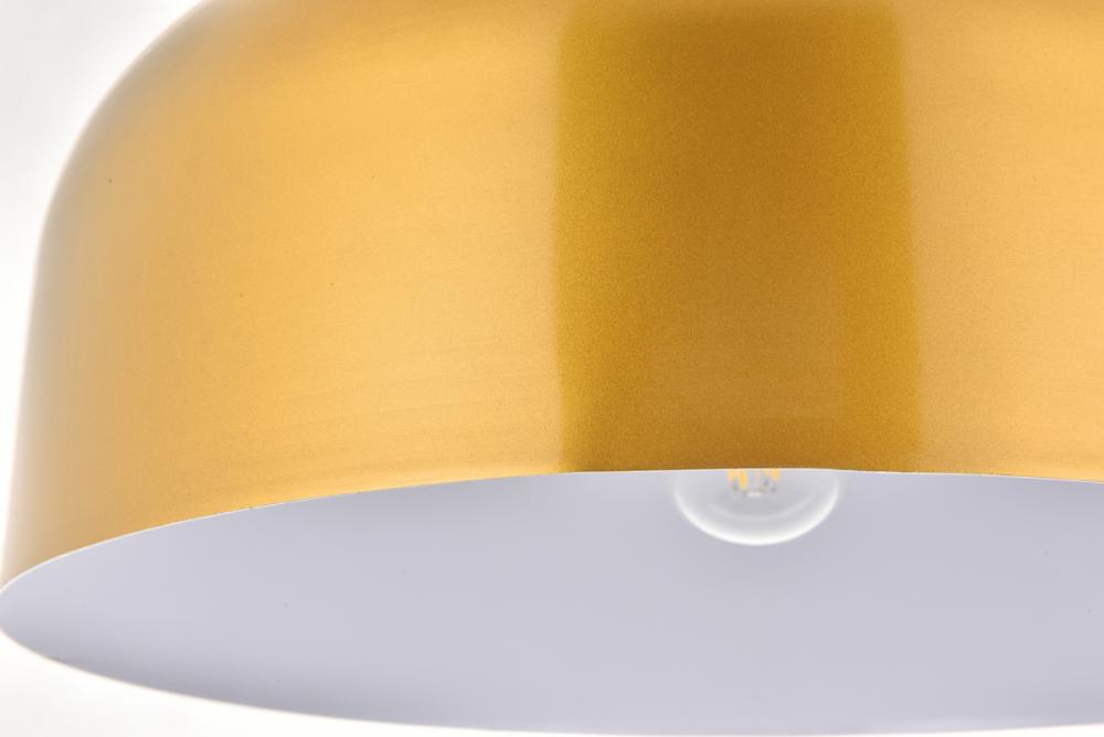 Cylinder shaped satin gold finish aluminum shade with white finish interior