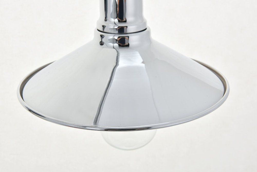 Flat cone shaped chrome finish metal shade with white finish interior