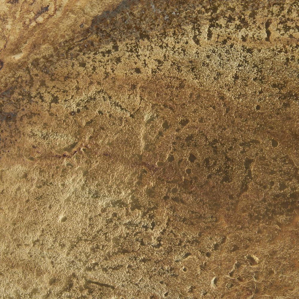 Simplistic in form, a shield of distressed antique brass is carefully aged to appear effortlessly burnished. We designed this cast aluminum centerpiece with a shallow dip and floating edges to make an over scaled home for your treasures. Finish will vary.