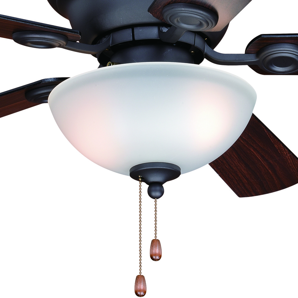 Fan-tastic! The Expo with its 5 wood look blades, finished with noble bronze or satin nickel accents and frosted glass shade, creates a warm and inviting glow of light in any room. Function and style, become one, in the stylishly designed Expo.
