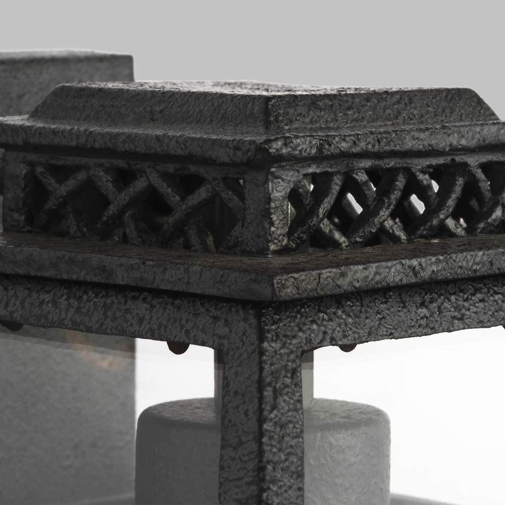 Falmouth by Chapman and Myers outdoor lighting design mimics a vintage gas lantern, with a classic, tapered box shape. The clean lines of the elegant frame have an uncluttered silhouette that showcases the beautiful panels of clear glass.