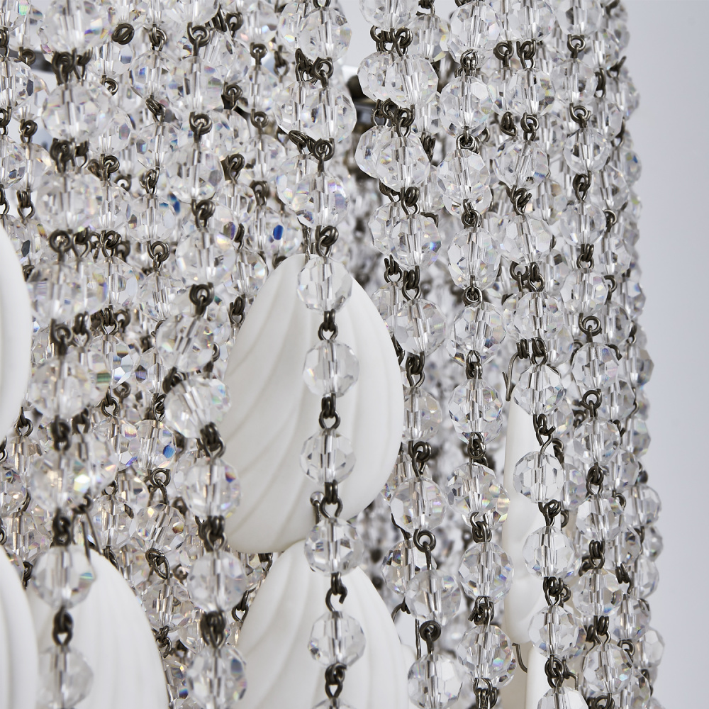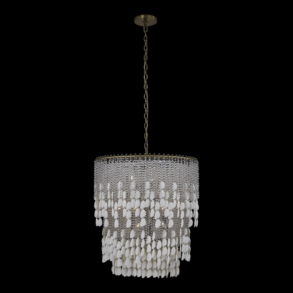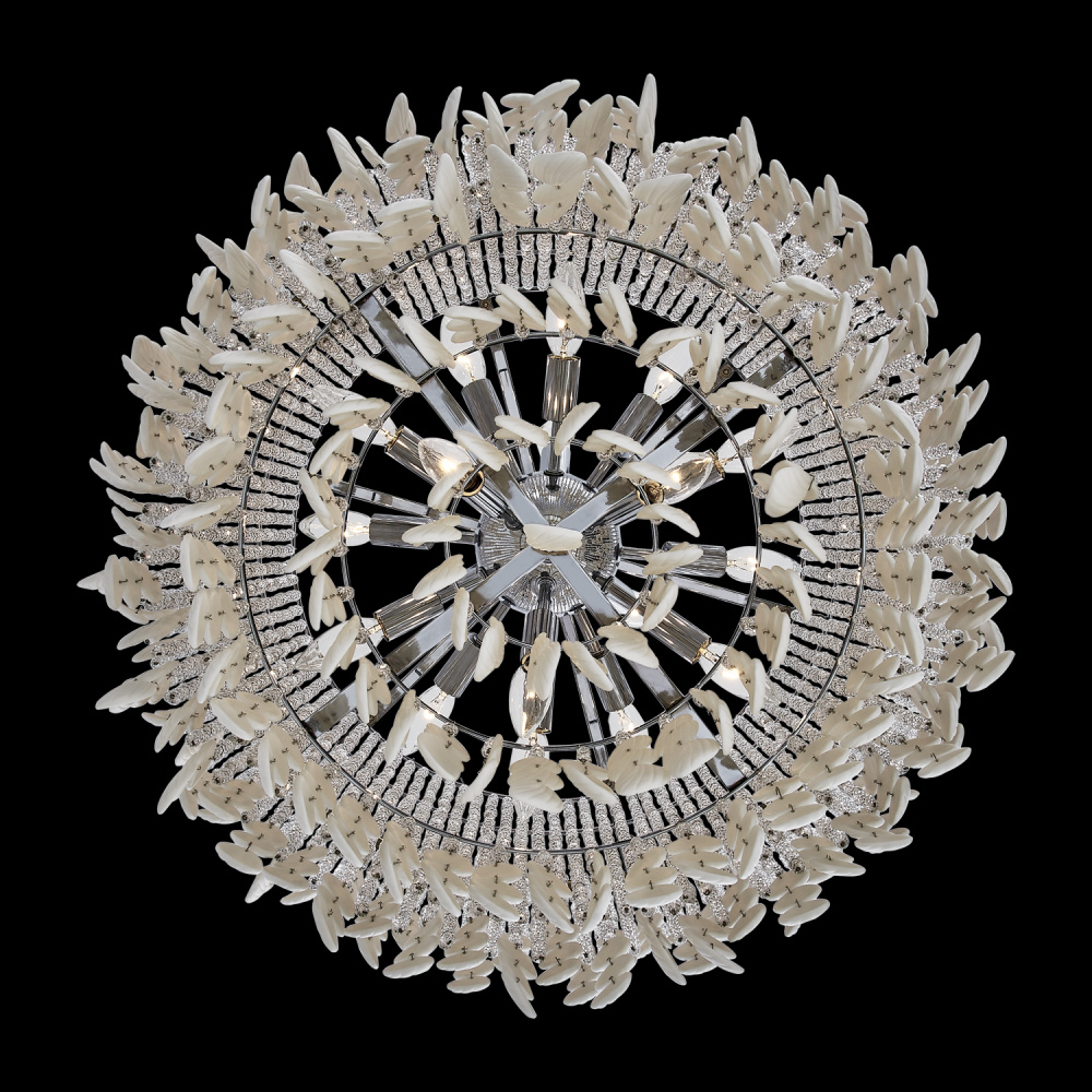Add sophisticated, boho flair to your space with the Farfalle collection. Sparkling Firenze crystals and bone china accents reminiscent of butterfly wings create an artful interplay of light and texture as the strands naturally move and sway with the breeze. Combined with our Brushed Champagne Gold finish (038), the Farfalle collection blends modern elegance with artistic charm, making it a striking, yet light and airy centerpiece for any room.