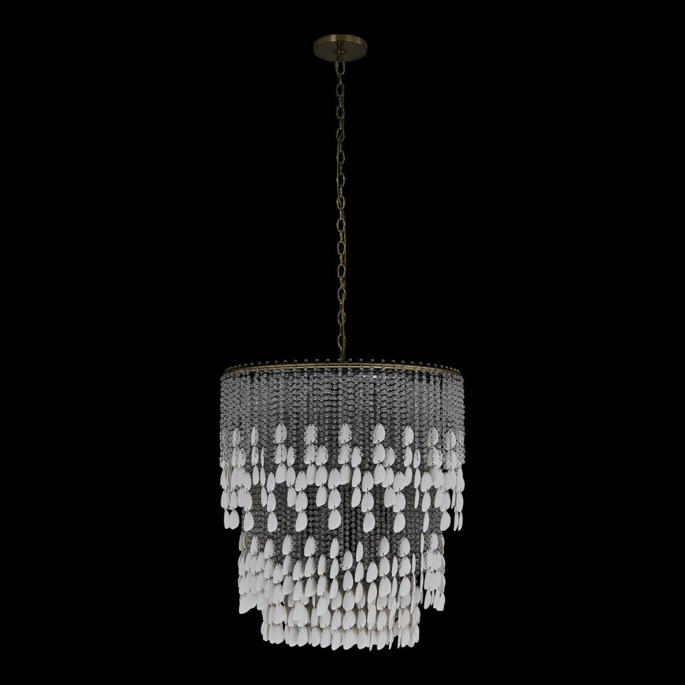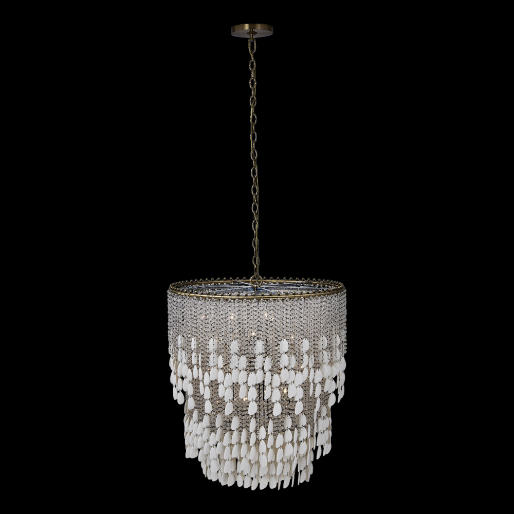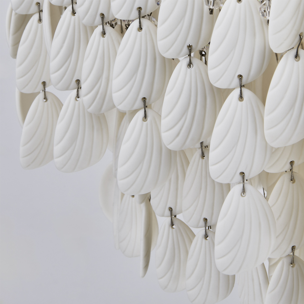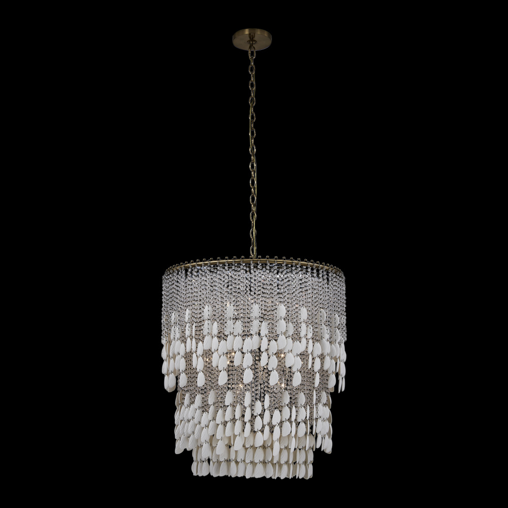 Add sophisticated, boho flair to your space with the Farfalle collection. Sparkling Firenze crystals and bone china accents reminiscent of butterfly wings create an artful interplay of light and texture as the strands naturally move and sway with the breeze. Combined with our Brushed Champagne Gold finish (038), the Farfalle collection blends modern elegance with artistic charm, making it a striking, yet light and airy centerpiece for any room.