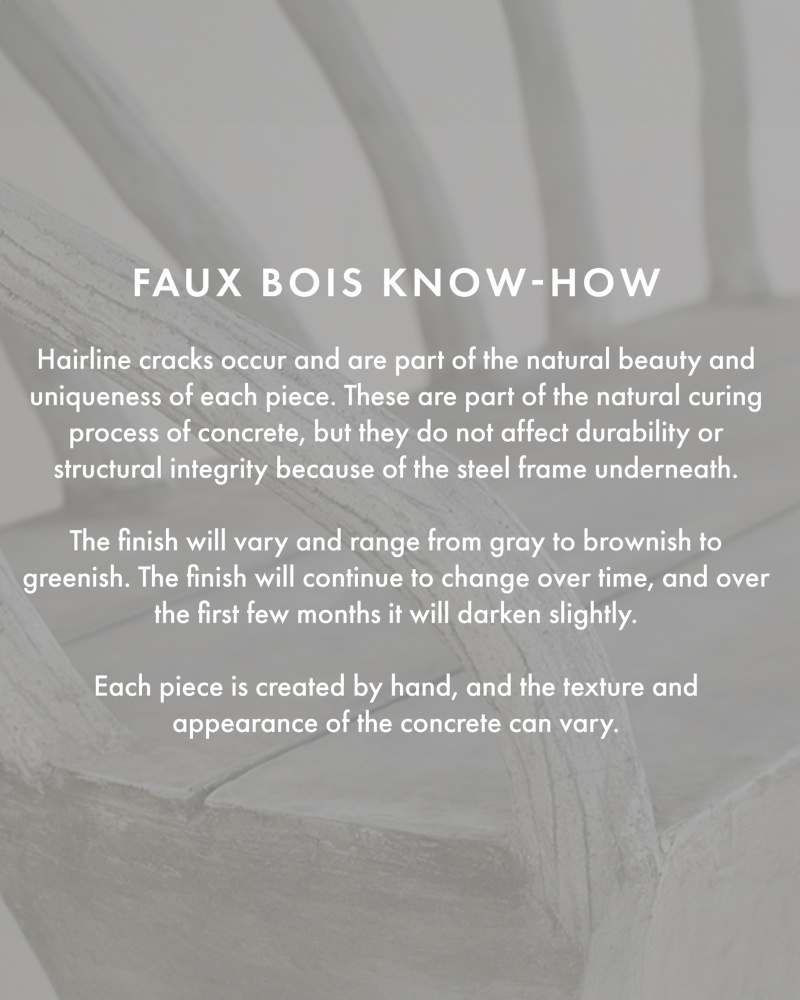 In the time-honored artistry of French faux bois, the base of the Faux Bois Cocktail Table is fashioned to resemble an aged tree that gracefully angles up to its top to convince the eye that nature created it. Durability is built into this faux bois table's DNA. The mix of lighter Portland and dark acid concrete finishes bring this creation ample texture, as do the life rings carved into its top.