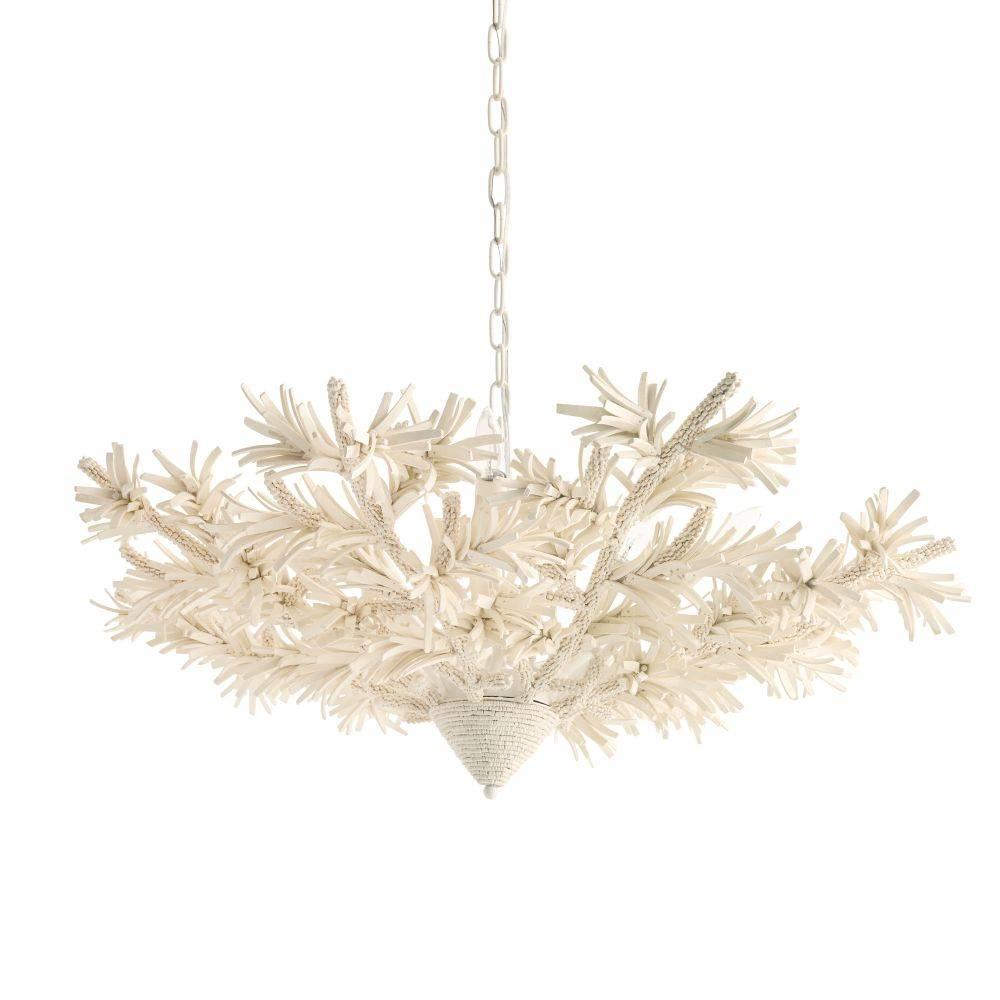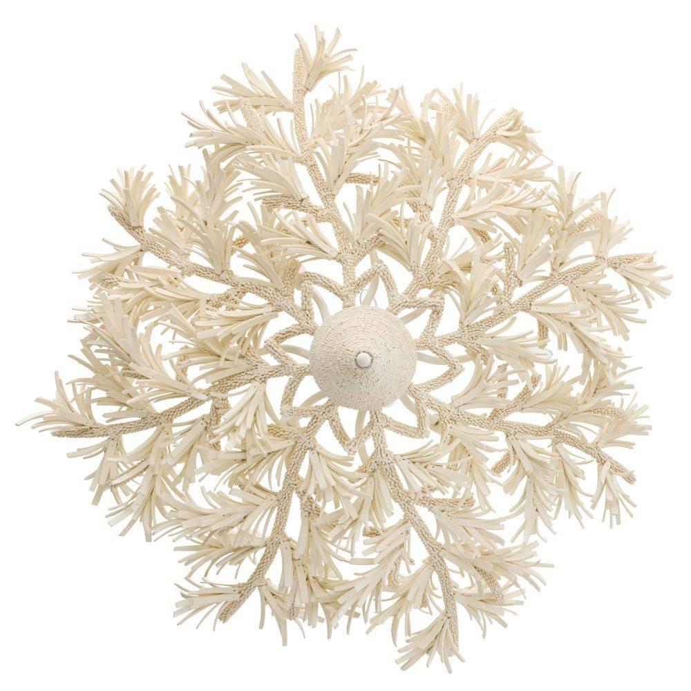 A textural mix of ivory coconut shell beads gives this fixture the look of a carefully constructed bird's nest. Delivering texture and movement wherever it is placed, it makes a bold choice for a coastal-themed room. Suspended from a white iron chain and canopy. Finish will vary.