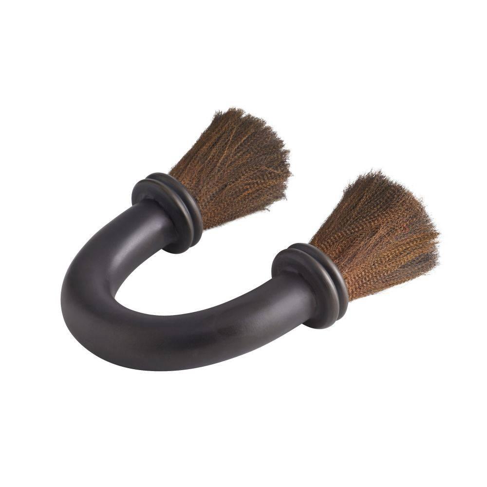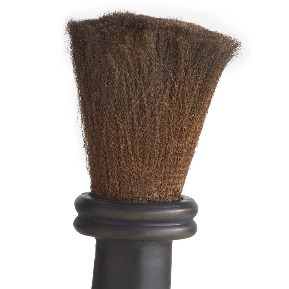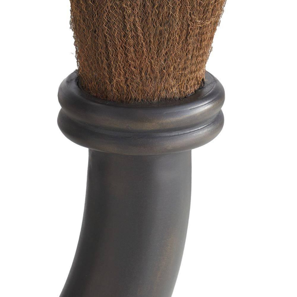 This sophisticated curiosity resembles an antique shaving brush, making it an impactful paperweight or desk accessory. Formed of heavy bronze-plated aluminum, it is finished with a crimped fringe of antique brass at either end.