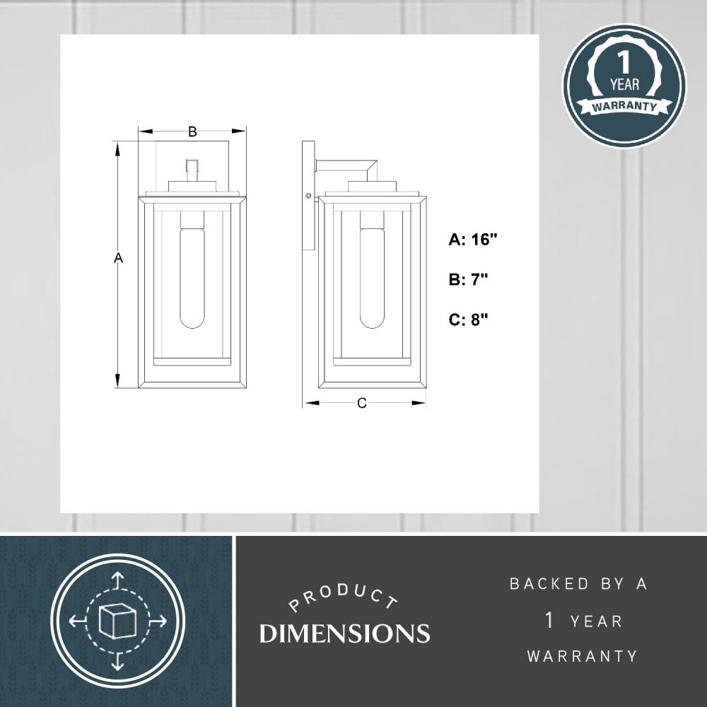 Dress up your home’s exterior with the modern Filmore outdoor wall light. Its frame-within-a-frame design adds a touch of contemporary sophistication. The textured black finish complements a wide range of home exterior styles, while the clear glass shade gives off a warm, inviting glow. Ideal for entryways, patios, or any space where you want to create a clean and minimalist look.