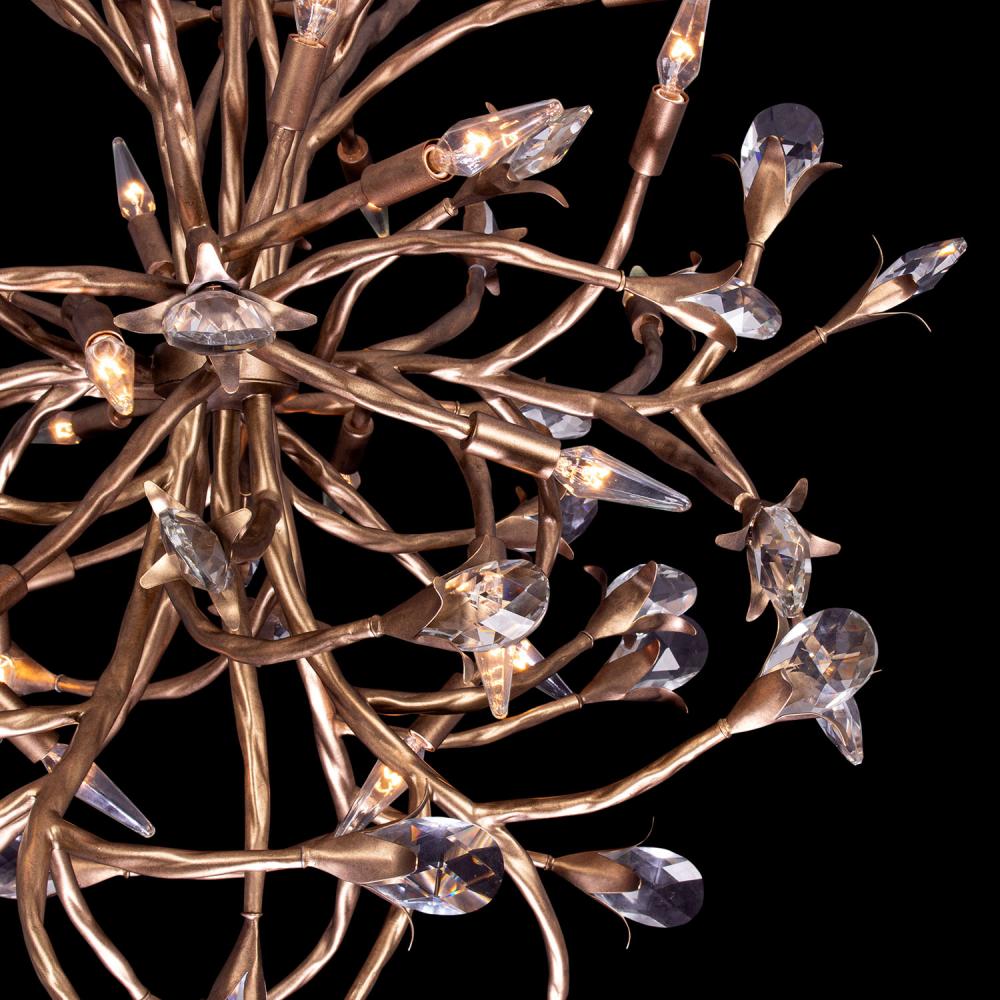 The skillful use of natural rock crystals held by the soft flow of branches creates an organic and inviting showcase of art and function. Finished in Pearlized Antique Brass, Fiore is sure to spark conversation in any space.