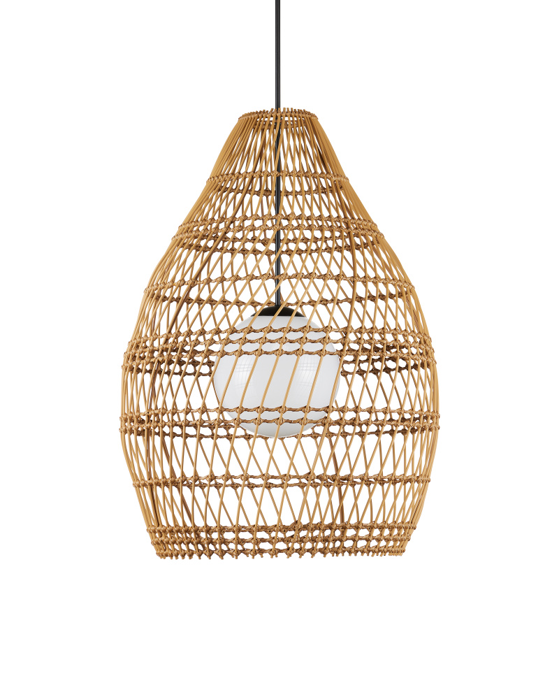 The Fishtrap Outdoor Pendant has a shade made of all-weather wicker that can easily withstand the elements, as will the metal hardware in a black powder-coated finish. The sense of movement achieved by the slant of the weave makes the pear-shaped shade seem as if it is spinning. The single-light pendant is wet location-tested, which makes it a shoe-in for lighting patios and porches. This is a true statement piece for even the largest of outdoor rooms. Adjustable from 46.75" to 88.75" with use of included chain/rod kit/cable. If your space calls for a longer drop, additional chain/rods/cable is available for purchase.