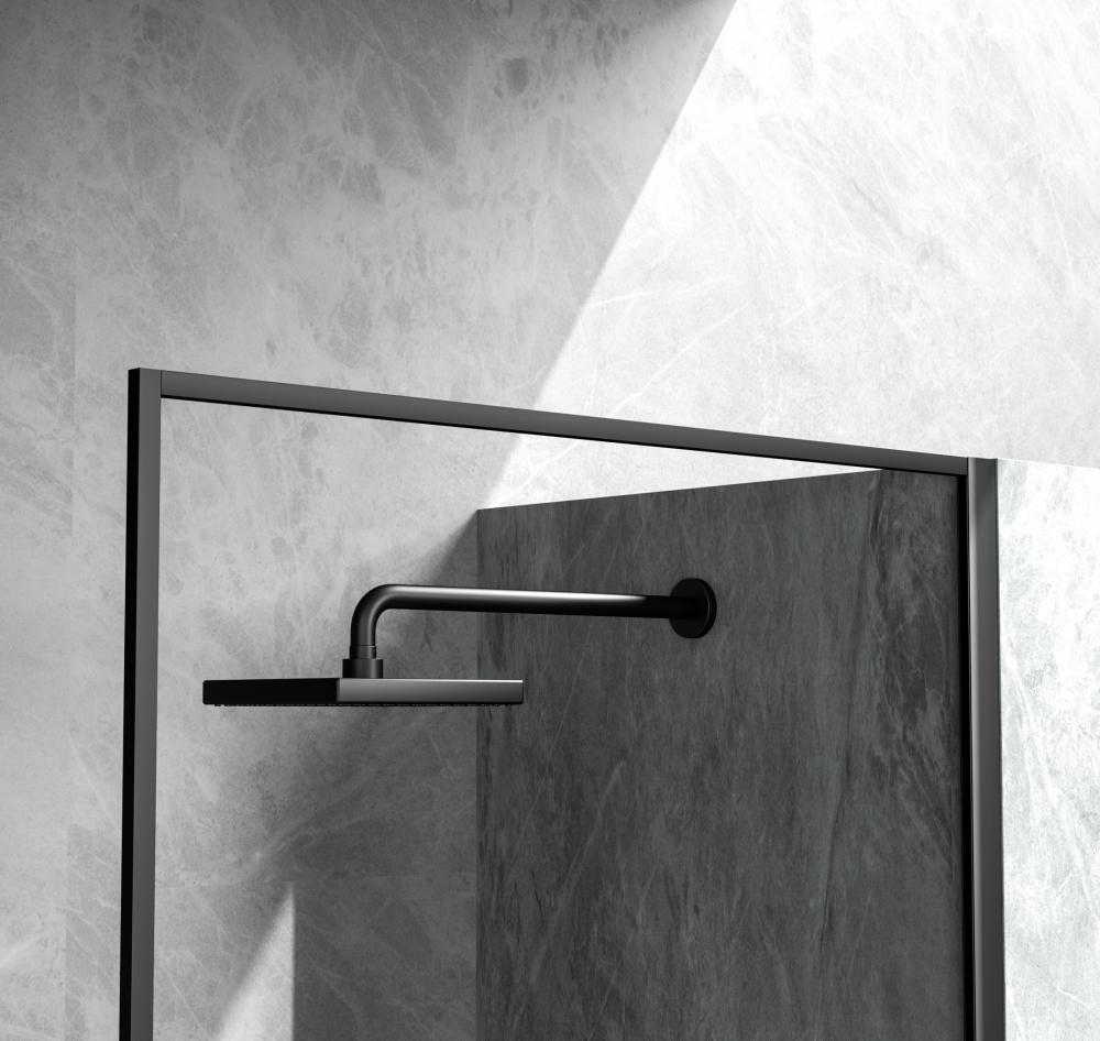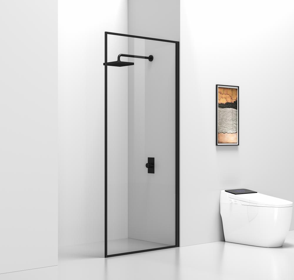 Fixed framed door is a modern alternate to having a fully-enclosed shower area