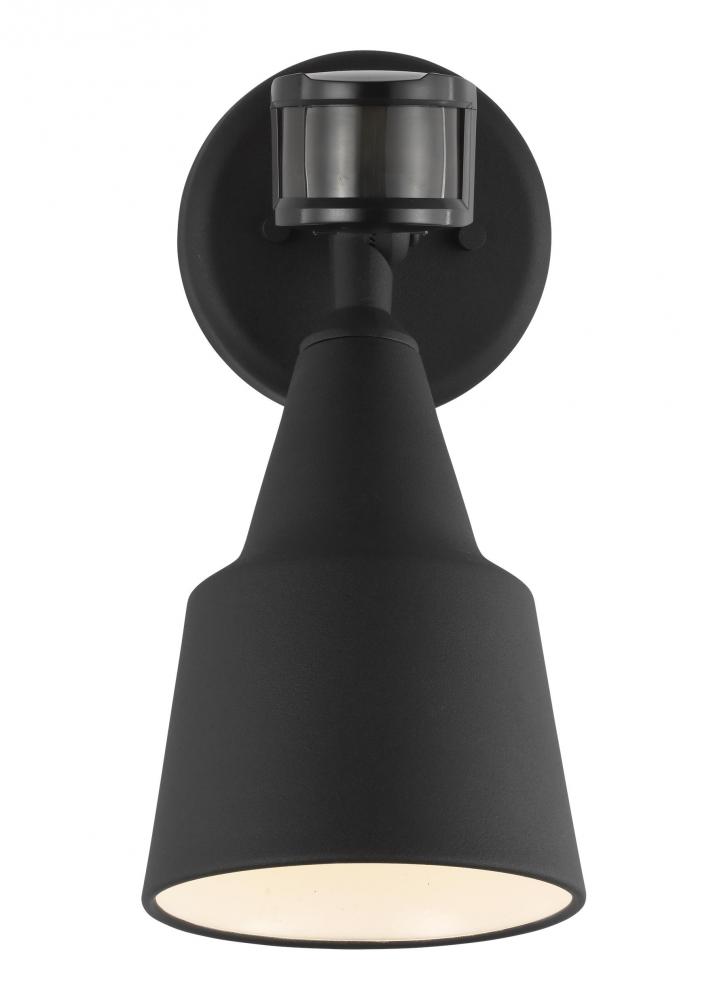 Flood Light traditional 1-light outdoor exterior flood with photo and motion sensor in black finish