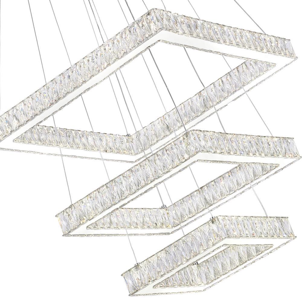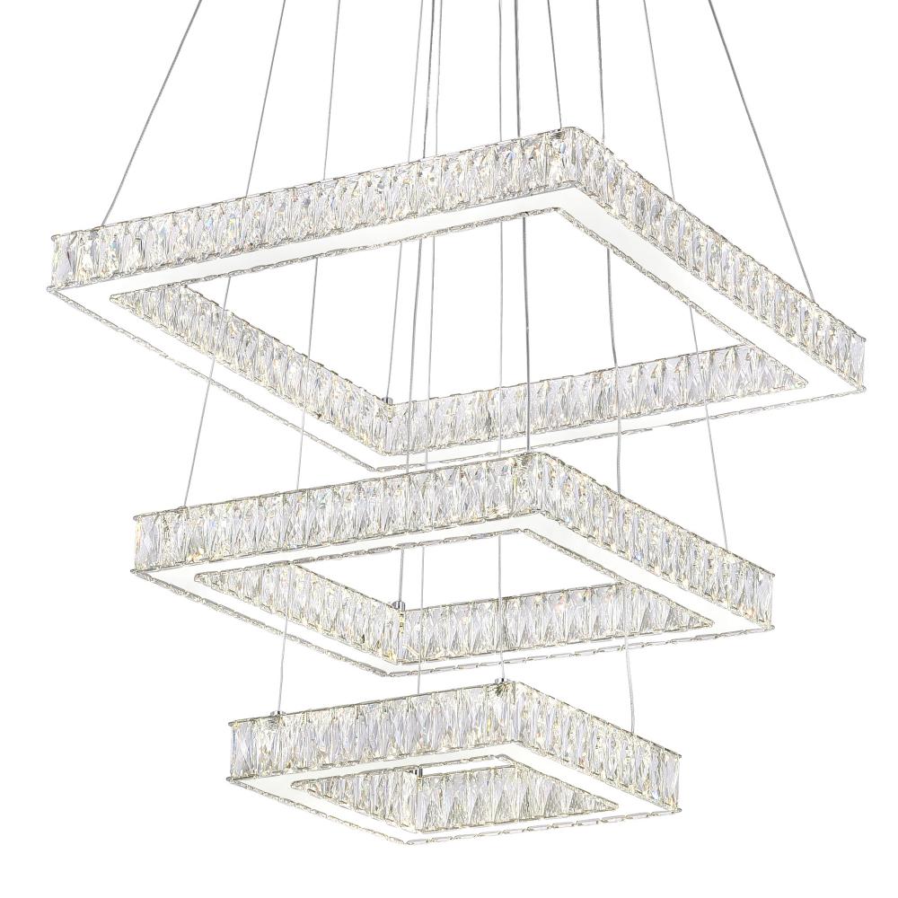 This breathtaking Florence 21''x21'' Modern 3-Tier Chrome LED Chandelier is a statement piece from our Florence Collection. Built to impress, this luxurious fixture features three square-shaped tiers completely wrapped in shimmering crystals and integrated LED panels. With its dazzling geometry and tiered construction, it produces a cascade of light and reflection that transforms any space. Perfect for soaring entryways, dining rooms, or stairwells, this chandelier delivers the grandeur and glamour youve been searching forwithout the hassle of changing bulbs. Finish: Chrome Light Count: Integrated LED Light Source: LED, No Bulb Required Adjustable Hanging Height: Yes Material: Metal and Crystal Style: Modern / Glam
