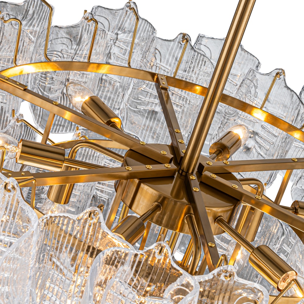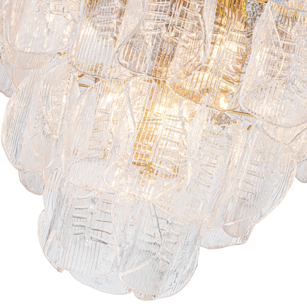 The Florentine Winds Collection captures the poetry of wind sweeping through an Italian courtyard - soft, fluid, and full of movement. Sculpted glass petals ripple with texture, glowing gently as they cascade in layered tiers. Warm, artisan-inspired metalwork anchors each piece, creating a romantic statement that feels both timeless and alive. A celebration of motion, light, and European elegance
