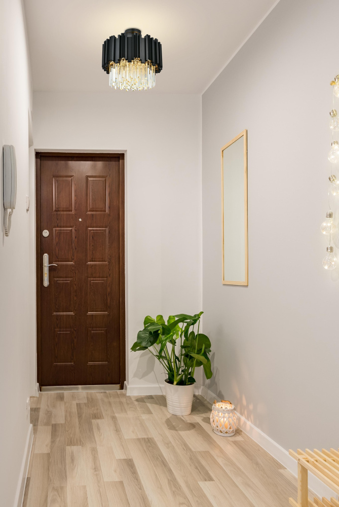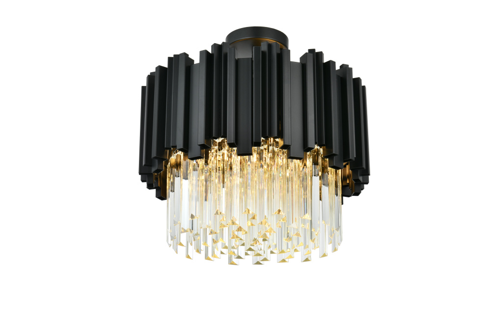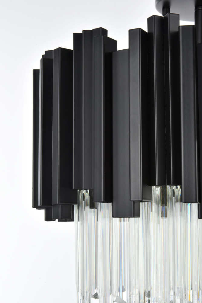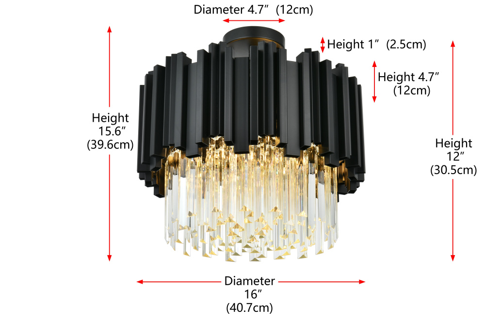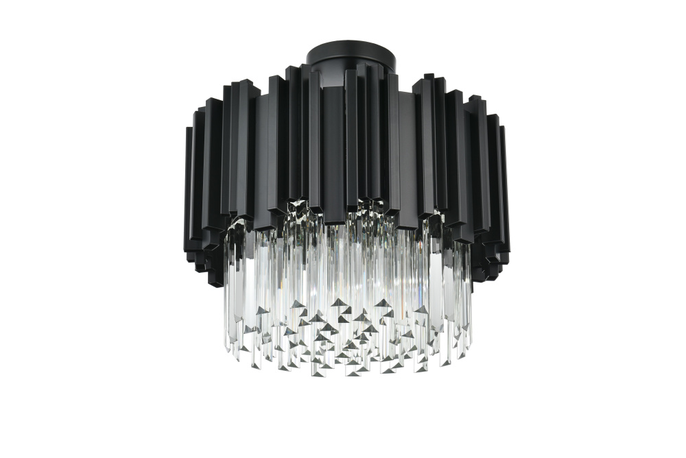 Transform your ceiling into a work of modern art with this flush mount chandelier, where bold geometry meets radiant brilliance. Crafted from durable iron and adorned with staggered clear glass pieces, this design creates a dynamic interplay of light and form. The staggered glass refracts light beautifully, casting mesmerizing patterns and filling the room with a soft, glowing ambiance. Ethereal and refined, the flush mount showcases a harmonious blend of sharp architectural edges and shimmering glass detail, creating a design that feels both structured and luminous. Fully dimmable, it lets you tailor the lighting to suit your mood—whether you need bright illumination or a cozy, intimate glow.Available in satin gold for a warm and luxurious finish, chrome for sleek, contemporary refinement, or black for bold, dramatic contrast, this flush mount chandelier complements any interior style. Perfect for spaces with lower ceilings, such as entryways, bedrooms, or living rooms, it delivers a bold design statement thout overwhelming the room. Complete with a matching canopy for a seamless look, this flush mount is as functional as it is captivating. Let it redefine your space with its radiant charm and dynamic beauty.